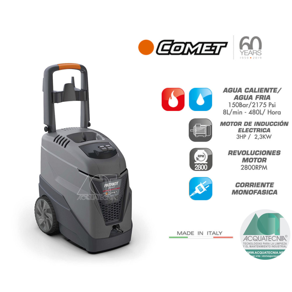 Cuenta con una bomba de alta presión COMET KLR GOLD del tipo plato axial o plato oscilante , con tres pistones en Acero inoxidable y Culata de bronce dispuesta en forma vertical,